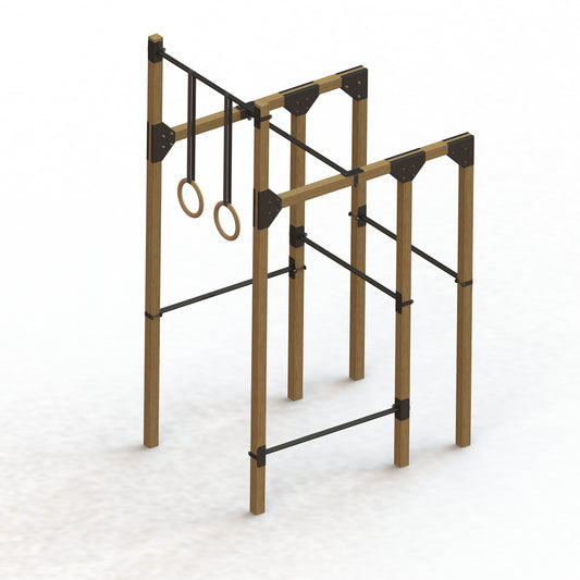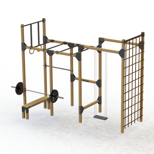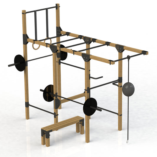 Ontdek onze unieke reeks fitness toestellen van hout, perfect voor wie duurzaamheid en natuurlijke schoonheid waardeert. Deze houten toestellen zijn niet alleen sterk en weerbestendig, maar voegen ook een elegante touch toe aan je tuin.