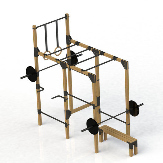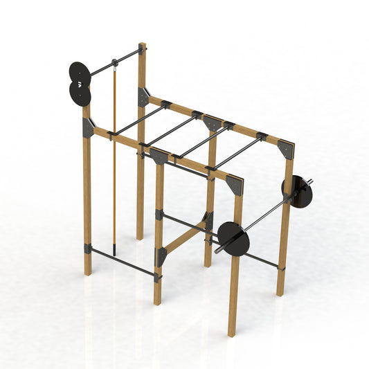 Dankzij de instelbare opbouw van de houten constructie, kun je sporten zoals jíj dat wilt. Of je nu met gewichten traint of aan bodyweight training doet: FitGardens brengt je in beweging.
